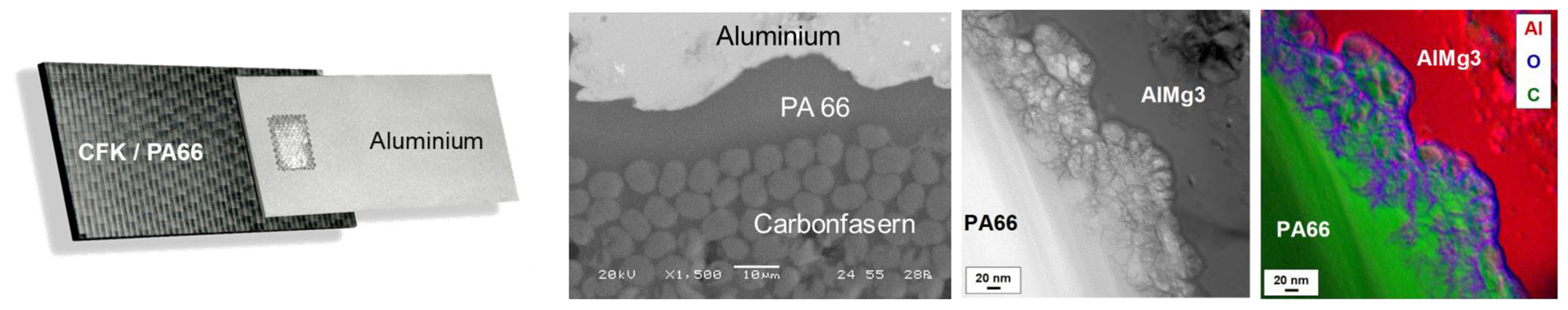 - Identifikation der Adhäsionsmechanismen, die zur Ausbildung einer langzeitbeständigen Fügenahtfestigkeit der Metall/Faser-Kunststoffverbunde beitragen