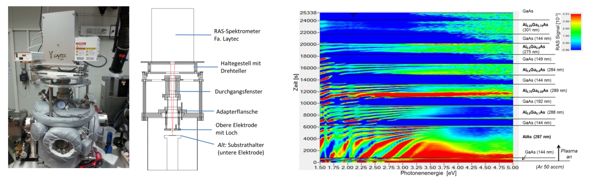 - In-situ monitoring der Oberfläche durch Reflexionsanisotropie-Spektroskopie (RAS) beim Reaktivionenätzen von einkristallinen (III/V-) Halbleiterproben